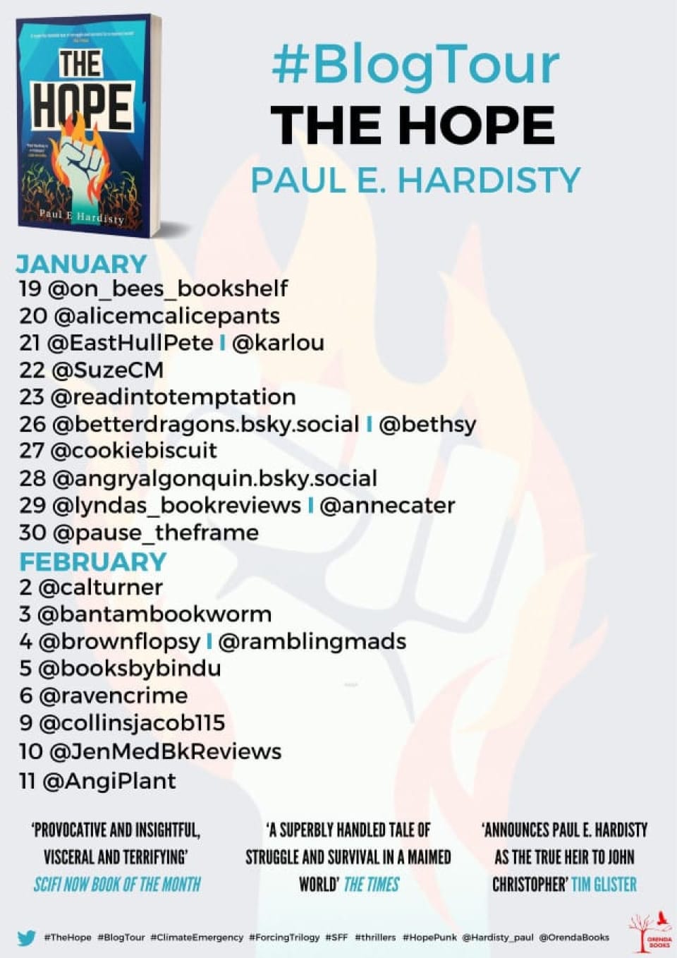 As always, many thanks to Orenda Books for including me on the blog tour for Paul E. Hardisty's "The Hope". The book is the third in a trilogy that started with "The Forcing" and continued with "The Descent". I reviewed "The Forcing" in February 2023.
